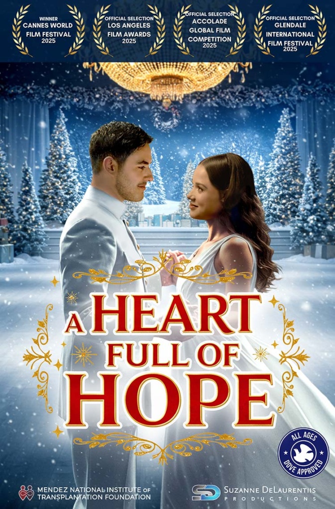 The Mendez National Institute of Transplantation Foundation (MNITF) and Suzanne DeLaurentiis Productions are excited to announce the global streaming release of their new holiday feature, A Heart Full of Hope, available through Uncork’d Entertainment starting mid-November 2025. Written by Tricia Aurand and directed by Dale Fabrigar, A Heart Full of Hope is a tender holiday film starring Juliah Taylor, Chelsea Cook, and Sebastian Armani. With its themes of perseverance and hope, it promises to be a moving addition to the holiday season lineup.